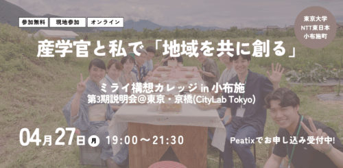 このたび、長野県小布施町・東京大学・NTT東日本の三者が共催する共創プログラム「ミライ構想カレッジ in 小布施」の第3期参加者の募集が開始しました。