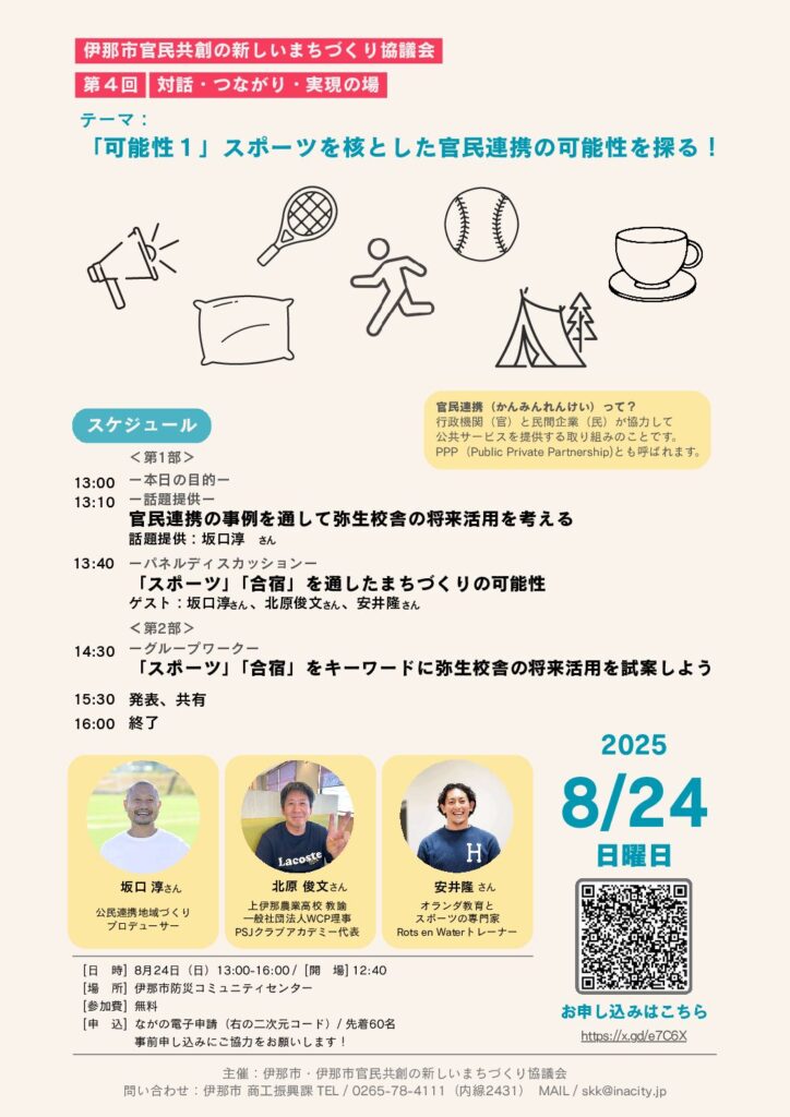 お申込みは伊那市HPよりお願いします。https://www.inacity.jp/shisei/machizukuri/newmachizukuri/20250825_machidukuri.html